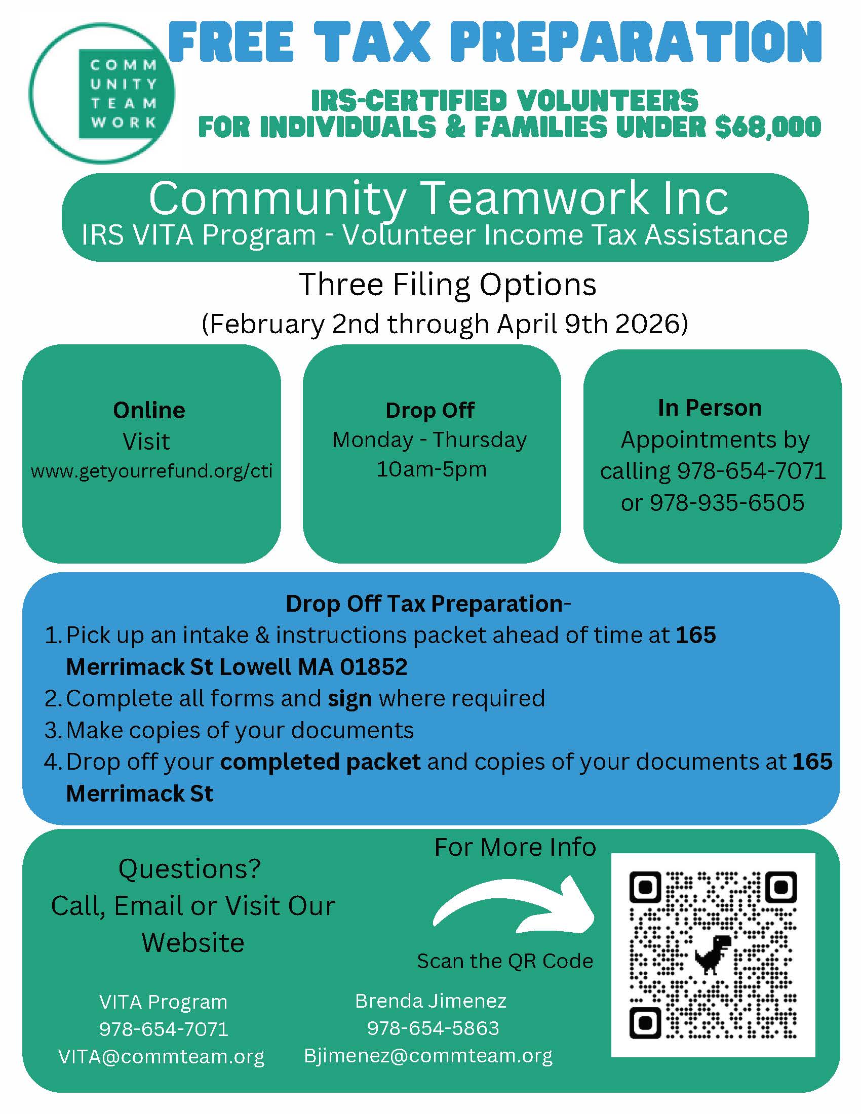 Thank you for your interest in having your tax returns prepared at Community Teamwork, Inc. (CTI).